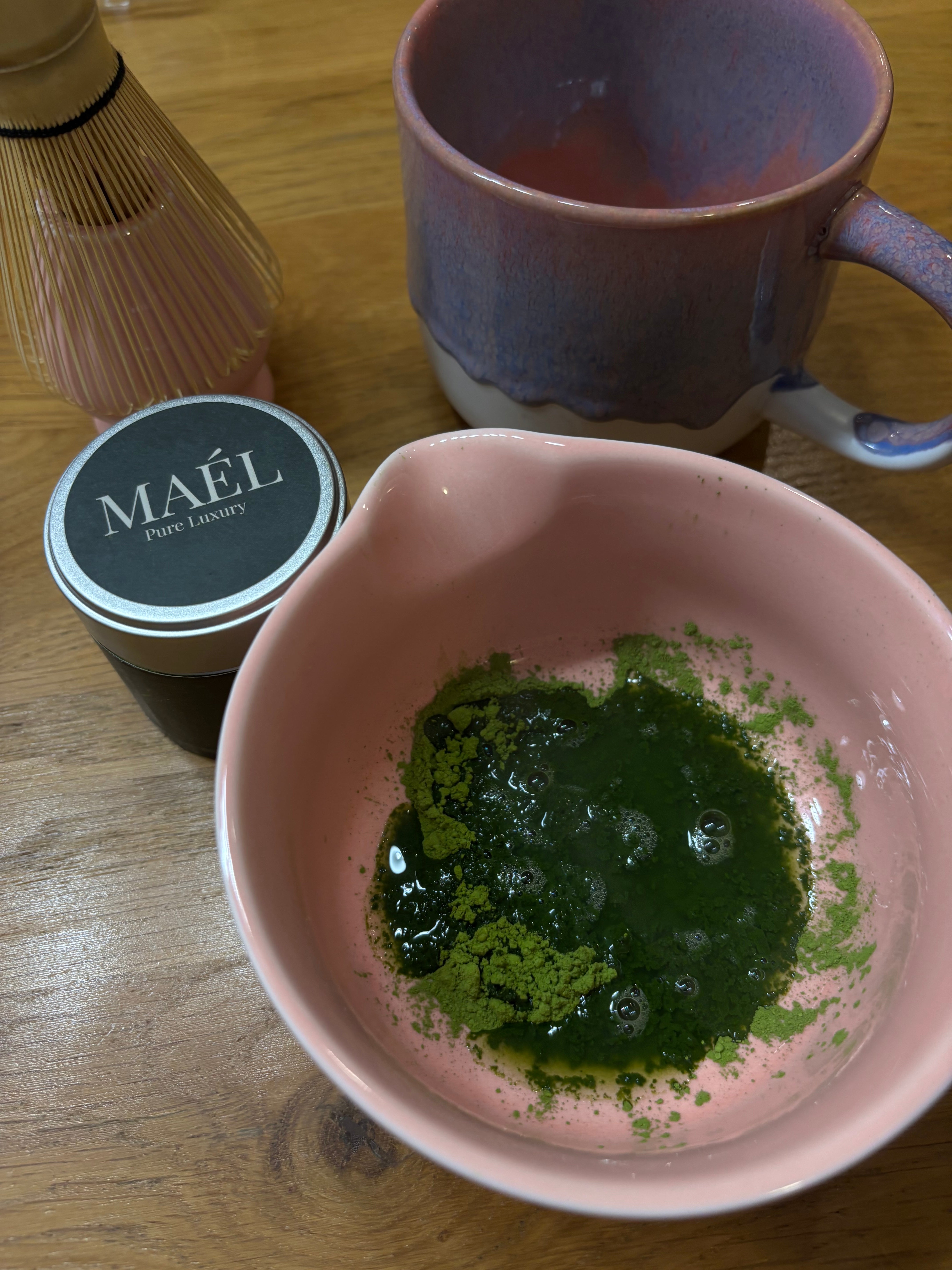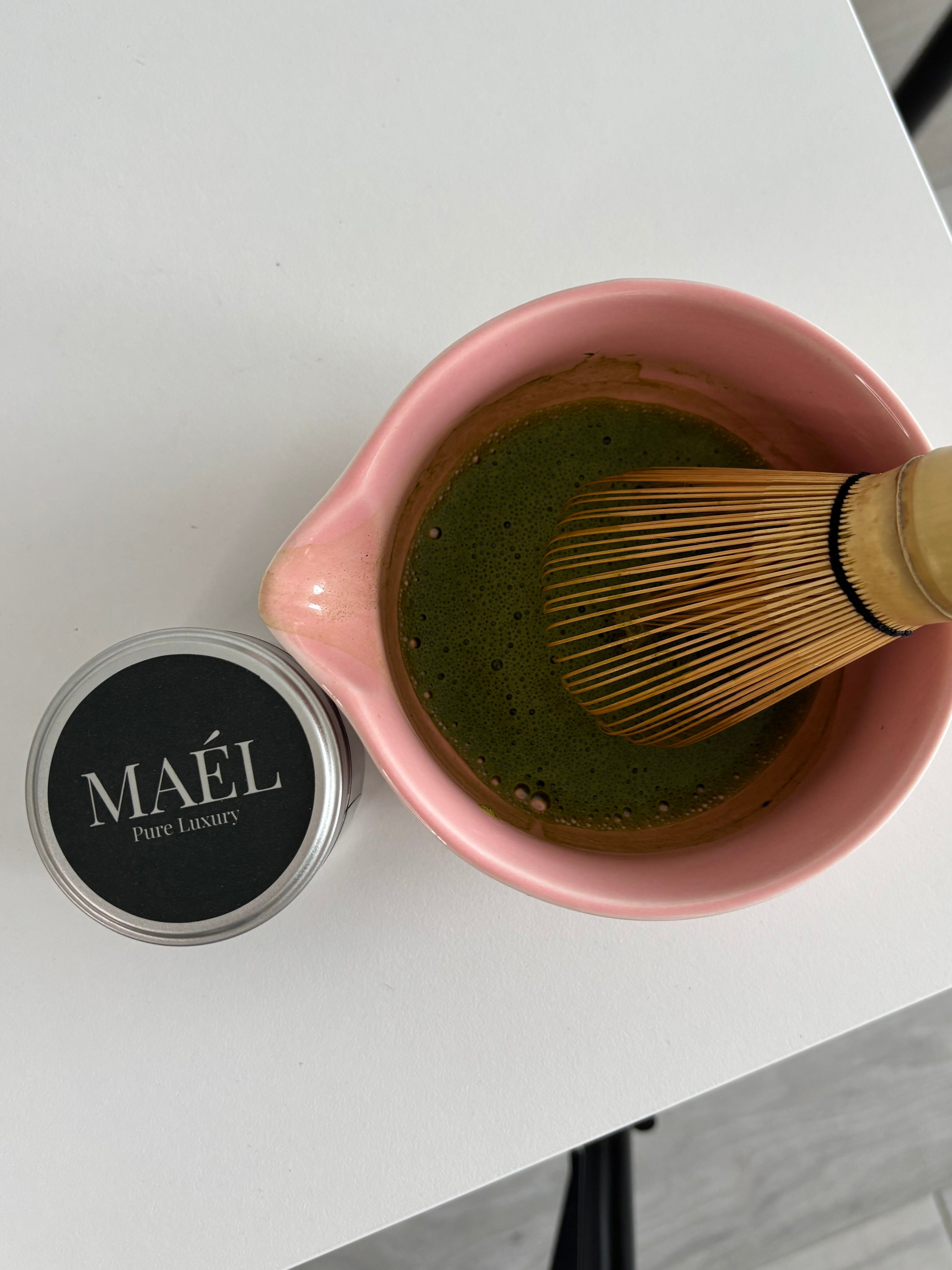 Unser Maél Matcha wird aus sorgfältig ausgewählten, fein gemahlenen Teeblättern hergestellt – für intensiven Geschmack und leuchtend grünes Aroma.